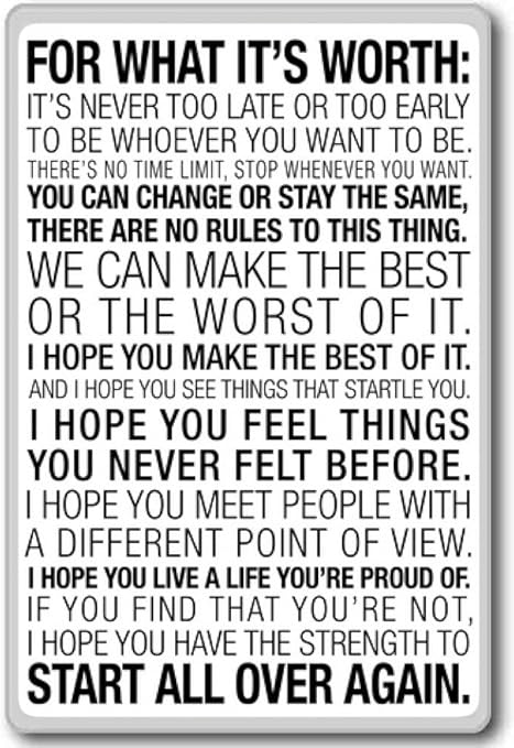 Amazon Com For What It S Worth It S Never Too Late Or Motivational Inspirational Quotes Fridge Magnet Kitchen Dining