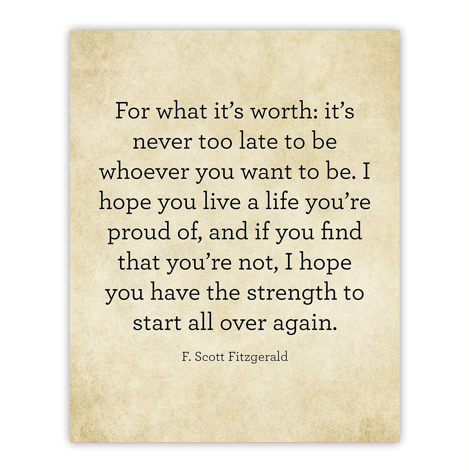 Amazon Com F Scott Fitzgerald Quotes For What It S Worth It S Never Too Late Inspirational Wall Art Sign 11 X 14 Typographic Poster Print Ready To Frame Home Office Decor Perfect Library Study Decor Handmade