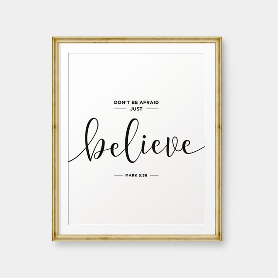 Don T Be Afraid Just Believe Mark 5 36 Bible Verse Art Etsy