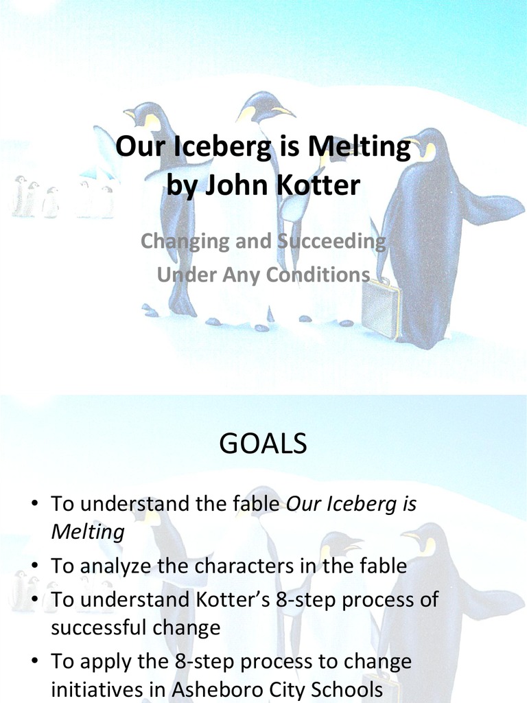 Our Iceberg Is Melting. We will find other places to live that are safer. Kotters best-selling book on leadingand succeedingin the face of even the most.